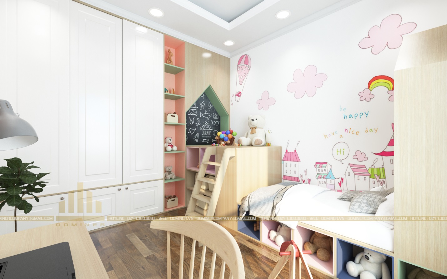 Việc áp dụng màu sắc cũng như những thiết kế tân tiến vào căn phòng sẽ làm nổi bật nét hiện đại nhưng và vẫn tôn lên vẻ truyền thống với hệ thống các gam màu dành cho từng lứa tuối.
